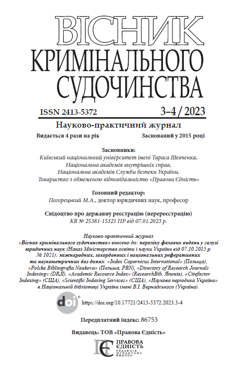 № 3-4 2023 Актуальні проблеми кримінального судочинства